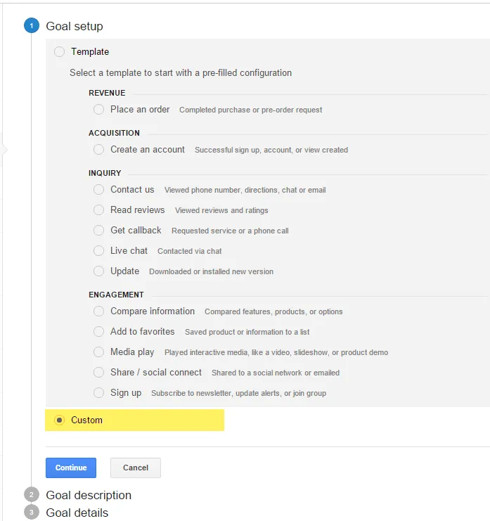 You’ll Be Taken To A Create Page Where You Can Select A Goal Type. You Probably Want To Choose Custom Because It Is.