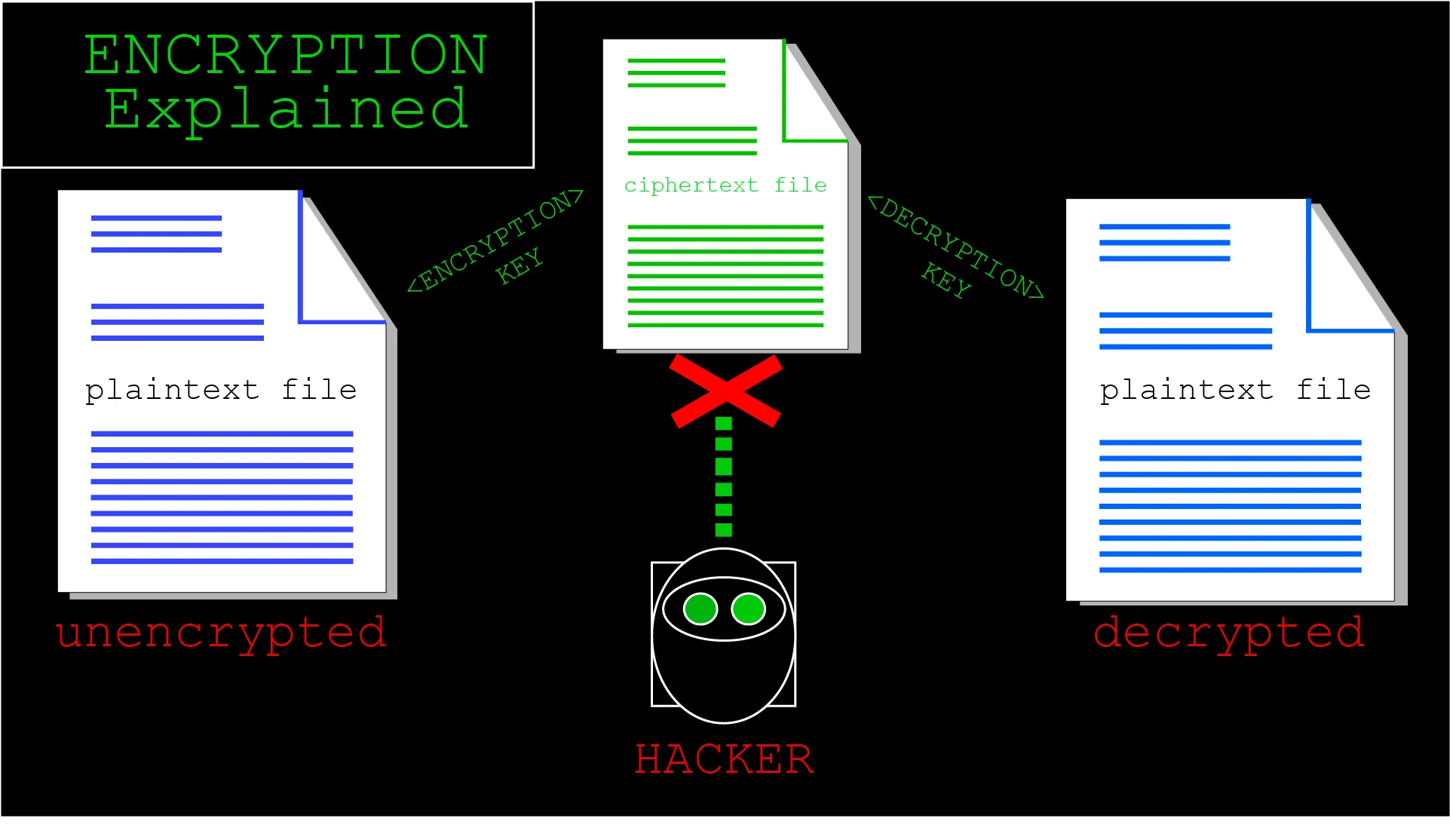 Encryption is the process of converting plaintext information into secret code called ciphertext. The formula used to encrypt plaintext is called a cipher or encryption algorithm. The cipher includes keys as a part of the formula which act as variables. When an intruder encounters the encrypted data, they must guess which cipher the sender was using, and which keys were used as variables.